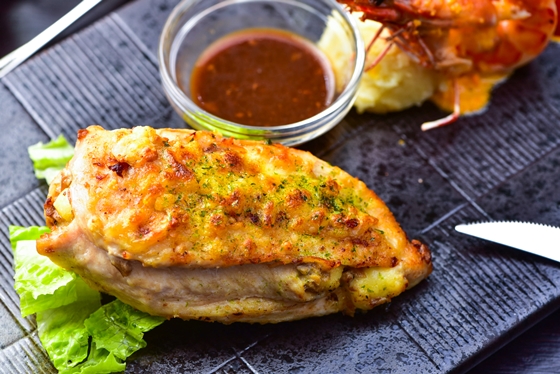 ?法式乳酪烤雞胸包香料烤蝦鮭魚捲