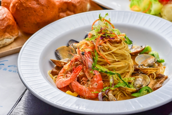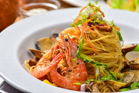有如像天使頭髮一樣纖細柔順的麵條,更容易吸收醬汁精華,濕潤的口感引人入迷,搭配鮮蝦與蛤蜊,層次更多變化!